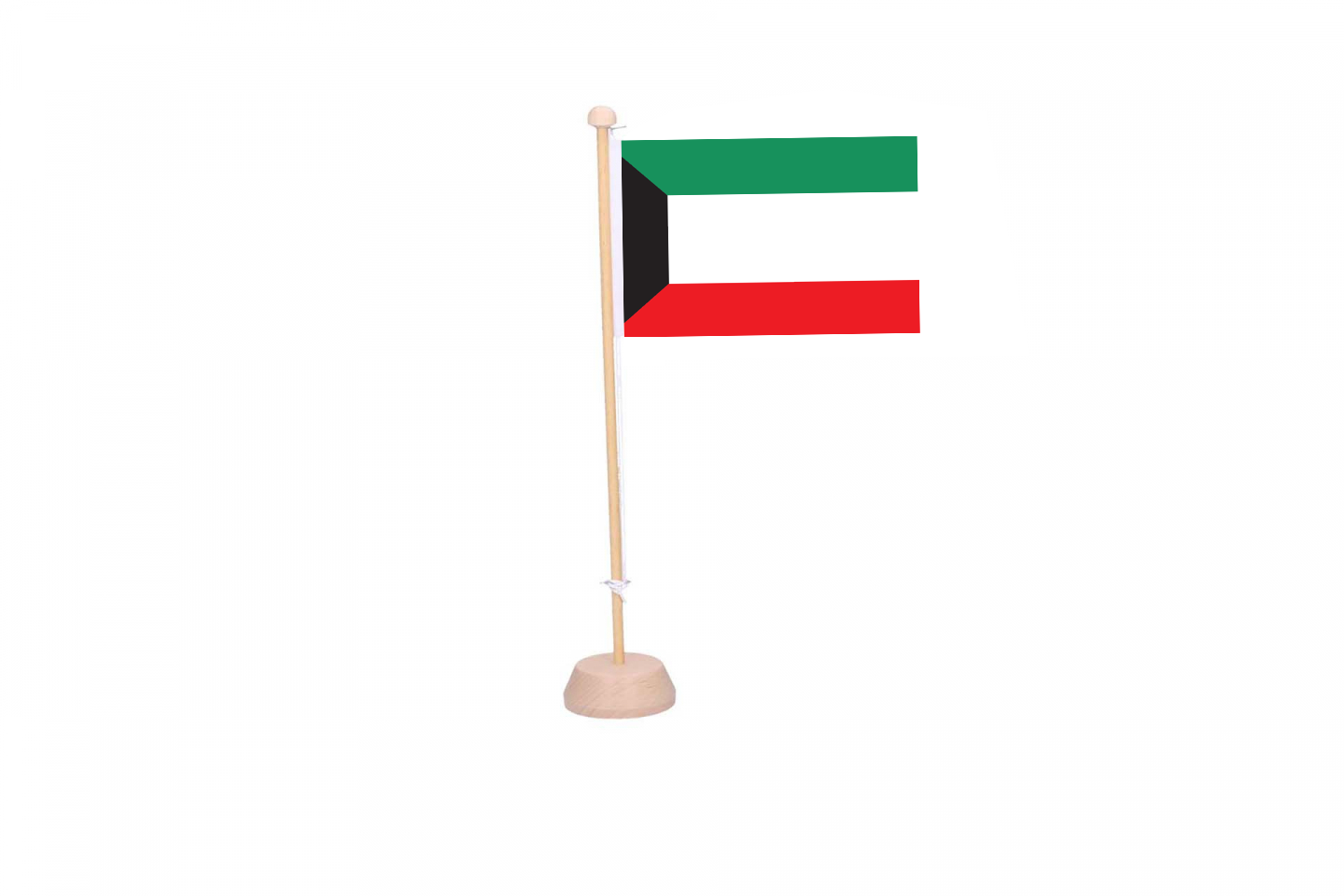Tafelvlag, Koeweit gemaakt van Acetaat is bedrukt met sublimatiedruk methode. Afwerking: Rondom geneden met tunnel. Formaat: 10 x 15 cm.